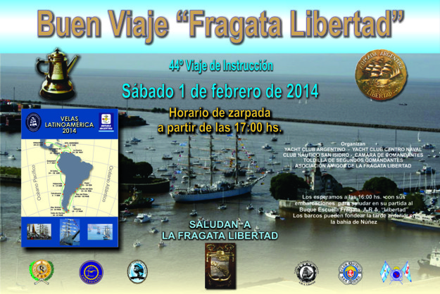 44º Viaje de Instrucción Fragata A.R.A. "Libertad" Enviado por CGLNM el Vie, 24/01/2014 - 18:32 Convocamos a todos ustedes a despedir el sábado 1º de Febrero a partir de las 17:00 Hs. a nuestra Fragata A.R.A. "Libertad", que zarpa desde el puerto de Buenos Aires en su viaje de instrucción número 44.