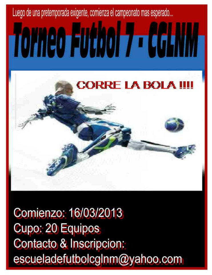 Comenzamos con la 2 temporada de la escuela de futbol gratis para socios entre 4 y 10 años. La fecha de inicio es el sábado 2 de marzo de 13 a 14 hs y la misma se realiza en la cancha 2 del club, entre el quincho y la cancha de césped sintético. Para mas información, nuestra dirección de mail es escueladefutbolcglnm@yahoo.com.