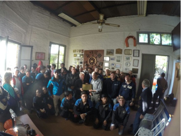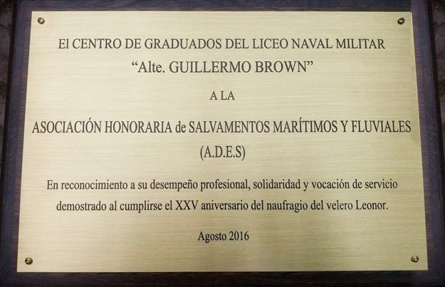 Luego los cadetes participaron de un city-tour guiado por el señor Carlos Pos quien reveló secretos de cada rincón del místico casco antiguo de la ciudad, para finalizar cerca de las 17hs donde la dotación se reunió en la sede de ADES donde se emplazó una placa conmemorativa que refleja la valiente y desinteresada labor que realizan los voluntarios de dicha asociación. Se compartieron unas palabras, donde acompañaron miembros de la Comisión Directiva, Srs. Alejandro Villaverde y José Jaureguizar, así como el jefe de la base Néstor Sosa y todos los voluntarios.